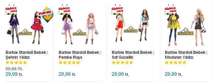 Şimdi Toyzzshop' lardaki Stardoll By Barbie bebekleri sadece 29,99 TRY!!! Bu zamana kadar pahalı diye alamadıysan şimdi tam zamanı!!! Üstelik paketlerin içerisinde 2 haftalık Süperstar üyeliği ve 50 Stardolları da hediye!!! Bu bebekler her kolleksiyonda olmalı!!!